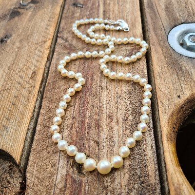Pearls are softer and more delicate than most beads or gemstones, so they require extra care during re-stringing. Specialist silk or thread is used, and each pearl is handled carefully to protect its surface and ensure the necklace wears safely over time. Knotted pearl necklaces also require precise, individual knotting to prevent pearls rubbing against one another and to reduce the risk of loss if the strand ever breaks. For these reasons, pearl and other delicate pieces are usually priced toward the upper end of the guide range.