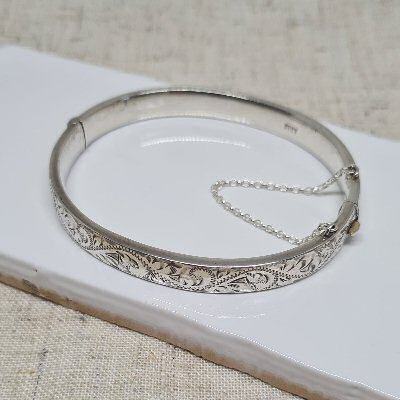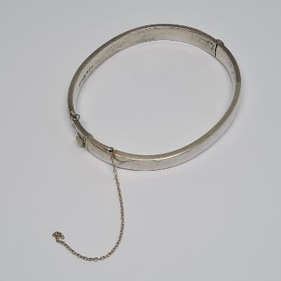 'Before': This lovely vintage silver bangle was tarnished and the safety chain broken...